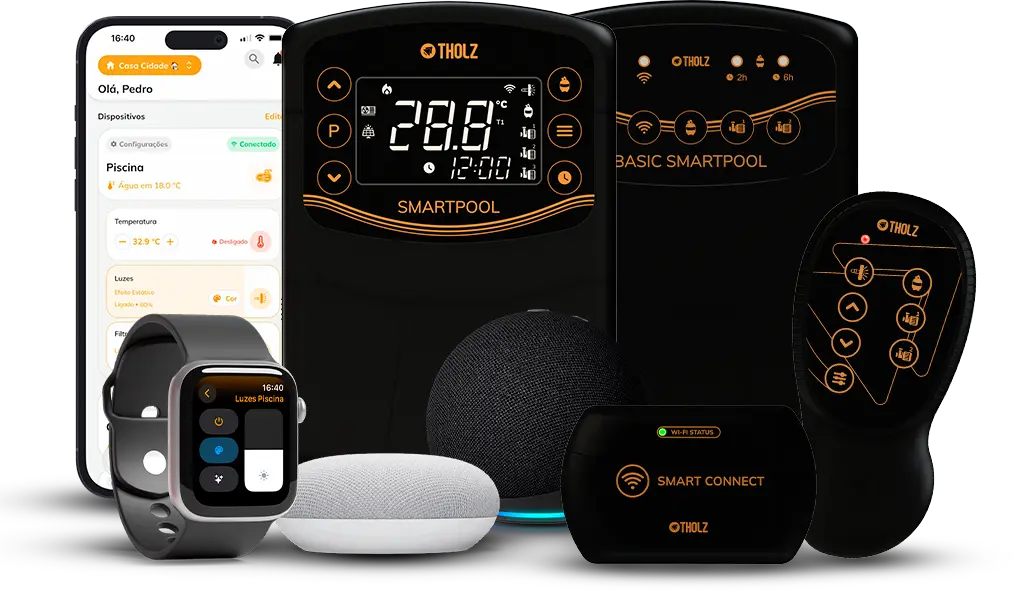 Controle a automação de piscina pelo aplicativo Tholz Casa Inteligente – Um ecossistema completo na palma da sua mão.